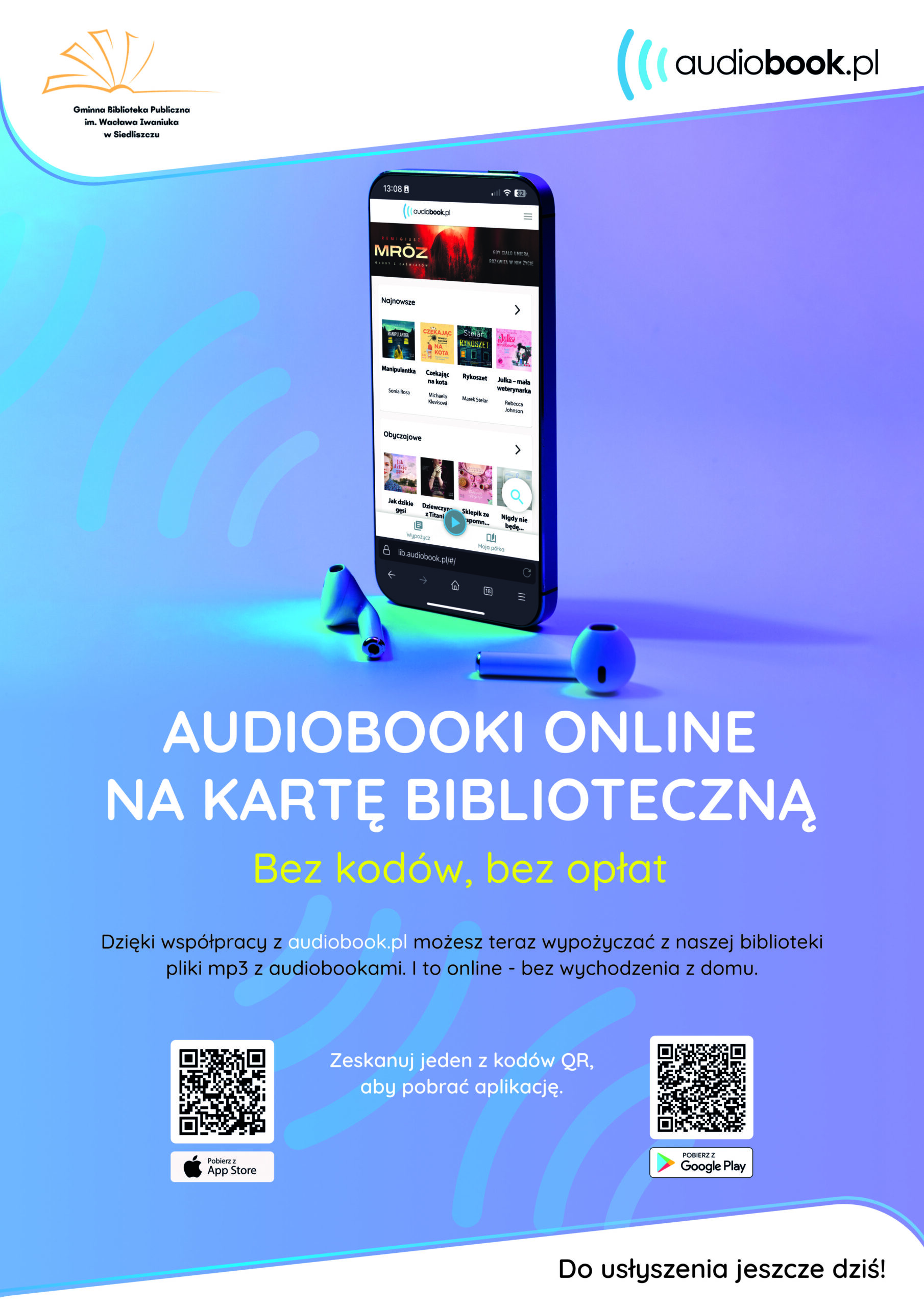 Czytelnicy naszej biblioteki mogą teraz korzystać z nowej usługi – wypożyczania audiobooków w formie plików MP3, dzięki współpracy z serwisem Audiobook.pl.